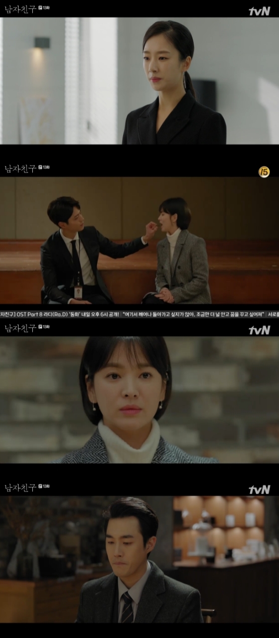 드라마 '남자친구'에서 백지원이 박보검과 연애 중인 송혜교에게 이별을 부탁했다.