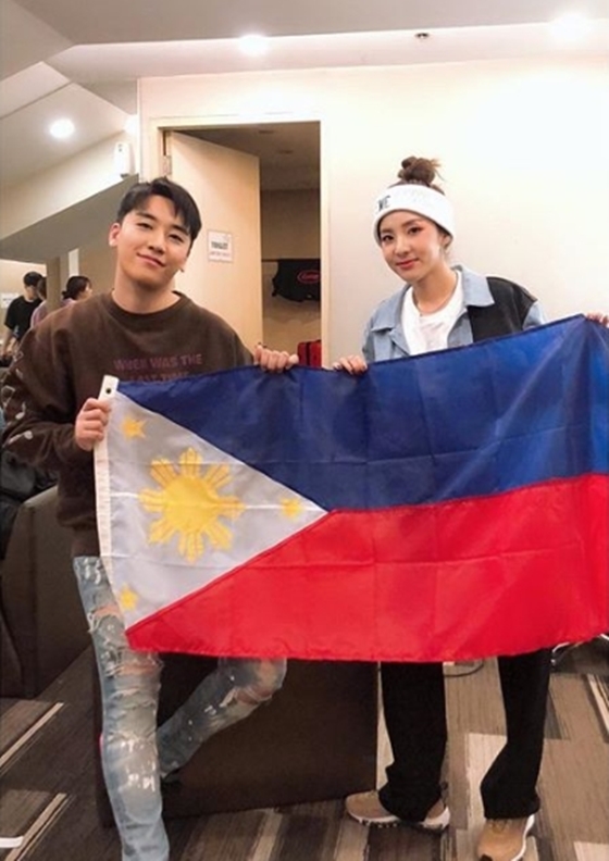 사진 속 산다라박은 승리와 함께 필리핀 국기를 들고 있었다. 둘은 다정하면서 훈훈한 모습으로 시선을 모았다.