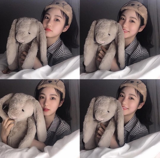 사진 속 신예은은 토끼 인형을 안았다. 귀여우면서 사랑스러운 매력으로 시선을 모았다.