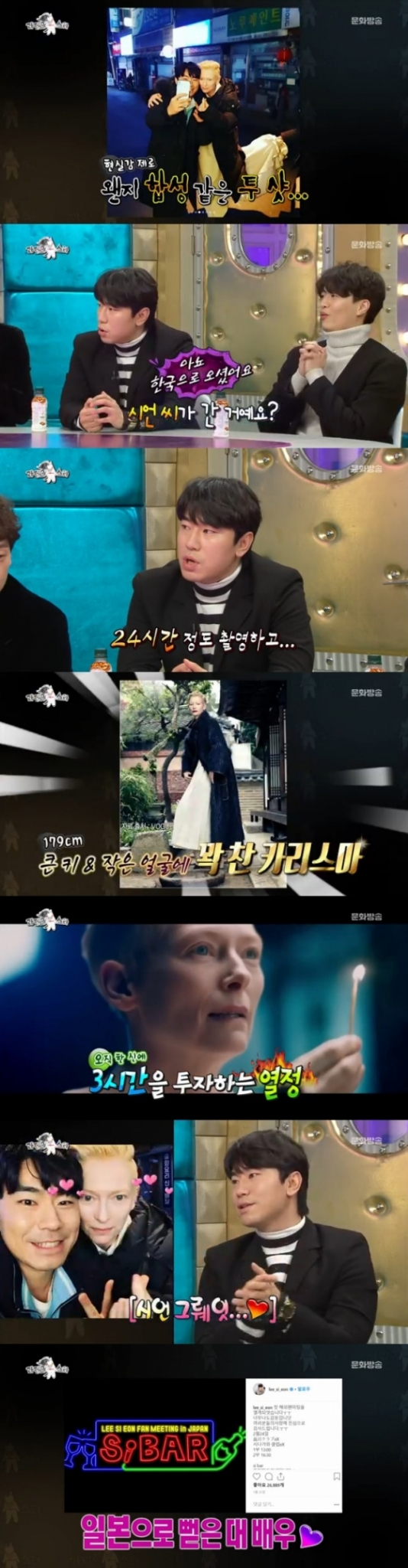 배우 이시언이 할리우드 스타 틸다 스윈튼과 광고 촬영을 함께 한 이야기를 직접 전했다.