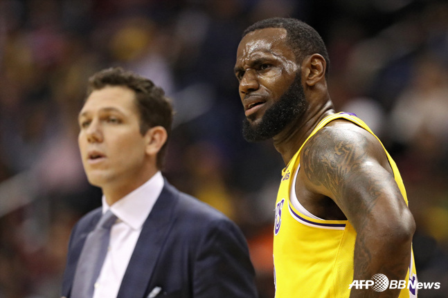 미국프로농구(NBA) LA 레이커스의 루크 월튼(39) 감독이 팀의 에이스 르브론 제임스(35)를 감쌌다. 리그 최고의 선수 중 하나인 제임스는 팀을 플레이오프로 이끌지 못했다는 이유로 적지 않는 비판에 시달리고 있는 상황이다.