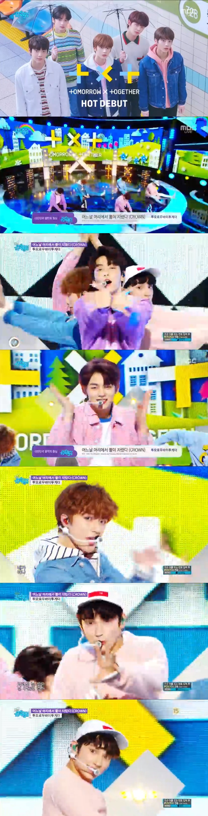 그룹 투모로우바이투게더(TXT)가 '음악중심'에서 데뷔 무대를 가졌다.