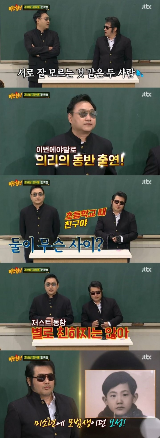 9일 오후 방송된 JTBC 예능프로그램 '아는형님'에서는 김보성과 김수용이 형님학교에 전학 왔다.