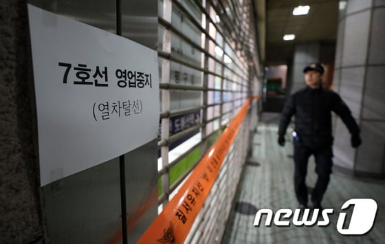 앞서 14일 오후 7시 22분쯤 수락산역을 출발해 도봉산역으로 향하던 7호선 열차가 터널에서 탈선한 사고가 발생했다.