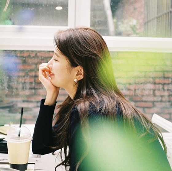 수지는 15일 자신의 인스타그램에 한 장의 사진을 게재했다. 사진 속 수지는 카페에서 환하게 미소 짓고 있다.