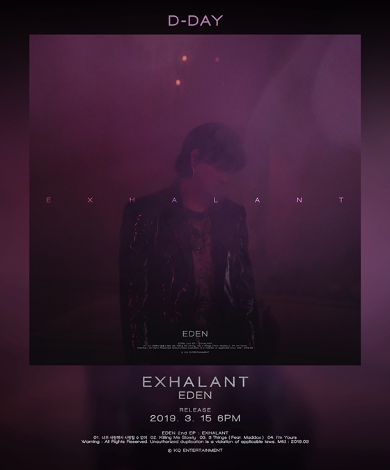 15일 오후 6시 각종 음원사이트를 통해 이든의 두 번째 미니앨범 'EXHALANT'(익스헤일런트)가 공개된다.