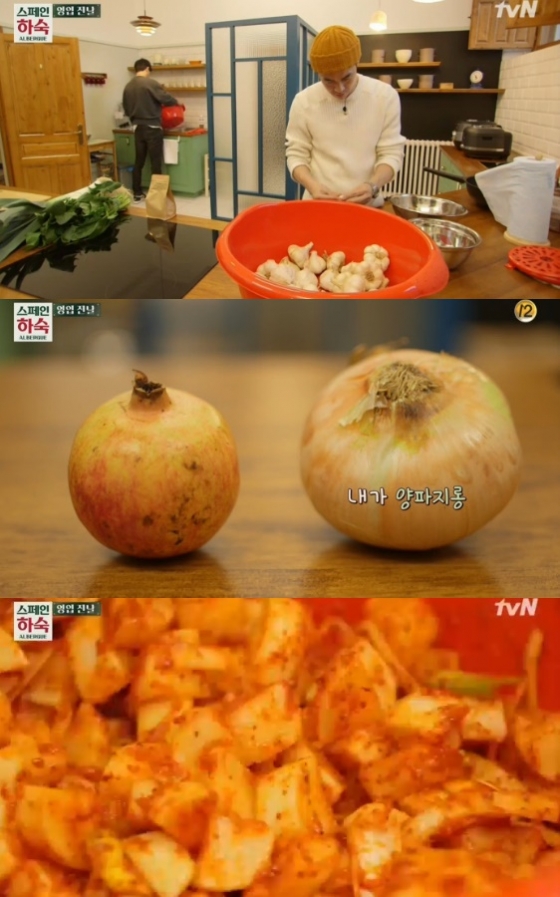 15일 오후 첫 방송된 케이블채널 tvN 예능프로그램 '스페인 하숙'에서는 차승원은 스페인 재료로 깍두기를 만들어냈다.