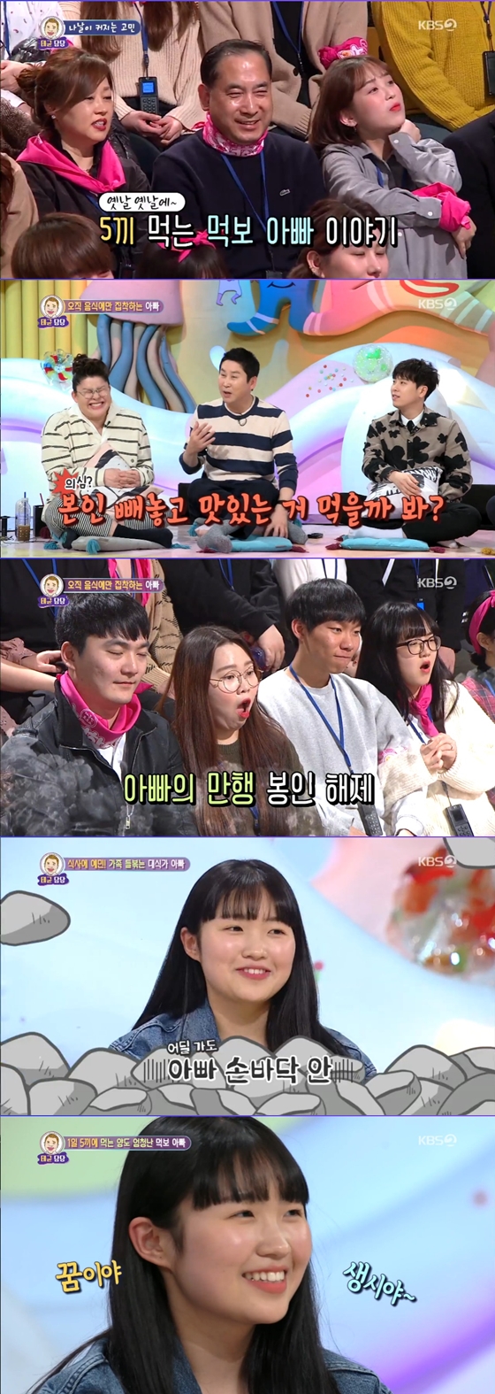 이에 아빠는 "딸들의 말에 귀를 닫지 않는다"라며 "담배 끊기가 어려운데 담배 살 돈을 매일 딸에게 입금한다"고 말했다. 이에 MC 이영자는 "딸은 무릎이 가려운데 아버지가 등허리 긁어주는게 아닌가 생각이 든다"고 말해 출연진들의 공감을 샀다.