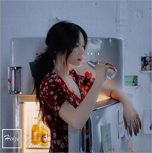 공개된 사진 속 헤이즈는 냉장고 문을 열고 무표정한 얼굴로 물을 마시는 포즈를 취하고 있다. 로맨틱한 플라워 원피스를 매치해 청순한 미모를 더욱 돋보이게 했다.