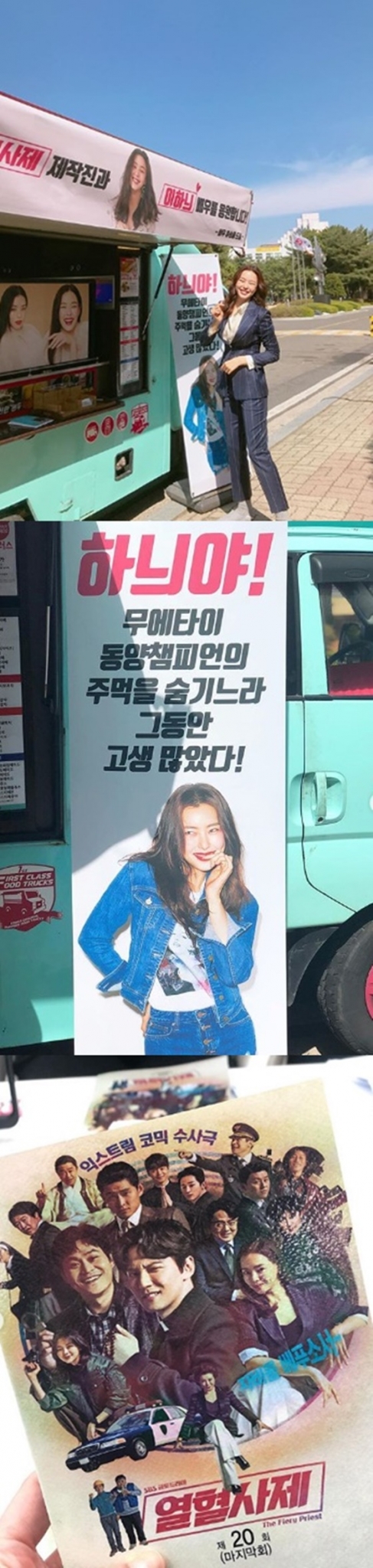 배우 이하늬가 류승룡의 커피차를 인증했다.