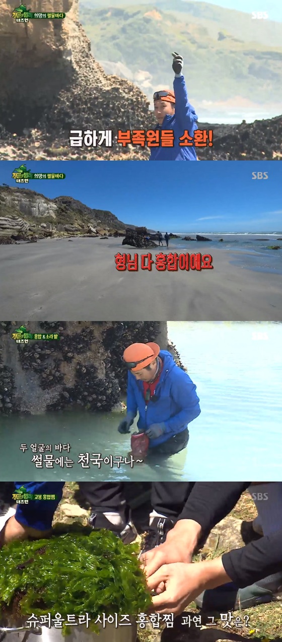 이어 이들이 발견한 것은 바위를 가득 덮은 홍합과 조개. 김병만은 "뉴질랜드는 어자원이 풍부한 나라다. 먹을 것 걱정은 없겠구나 싶었다"며 안도했다.
