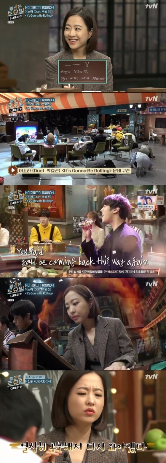마산 어시장의 아귀요리가 걸린 첫 노래는 이소라(Deut. 박효신)의 'It's Gonna Be Rolling'이었다. 첫 듣기 시간을 가진 뒤 멤버들은 "둘의 하모니 때문에 더 안 들려"라고 아우성쳤다.