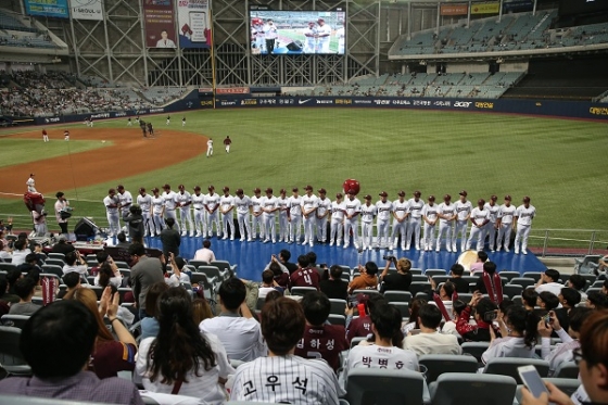 고양히어로즈 선수들은 이날 펼쳐지는 LG트윈스와의 경기를 관전하고, 클리닝타임에는 1루 응원단상에서 팬들과 인사를 나눴다.