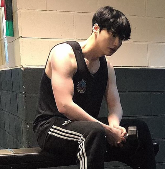 안재현은 27일 자신의 인스타그램에 한 장의 사진을 게재했다. 사진 속 안재현은 민소매티를 입고 근육을 뽐내고 있다.