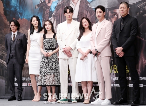 배우 한재석, 윤지민, 박세완, 송원석, 경수진, 강지환, 이재윤이 4일 오후 서울 강남구 논현동 임피리얼 팰리스 호텔에서 진행된 TV CHOSUN 특별기획드라마 '조선생존기' 제작발표회에 참석해 포즈를 취하고 있다.