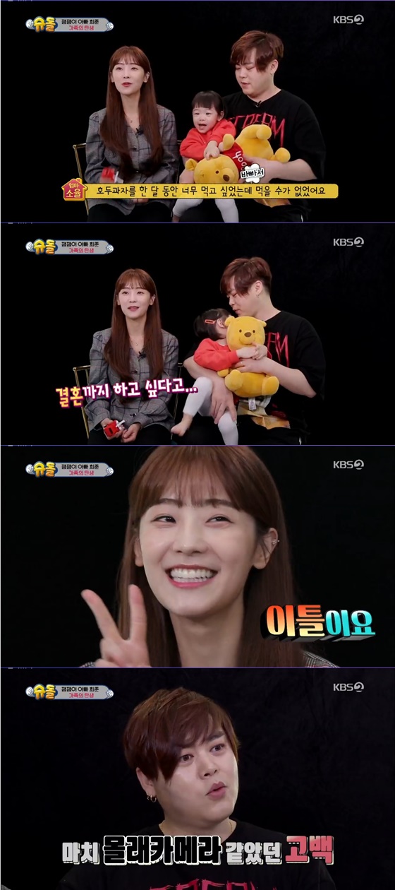 이어 소율은 "데이트 한 지 이틀 만에 제가 먼저 결혼하자고 얘기하니까 남편이 당황하더라고요"라고 말했다.