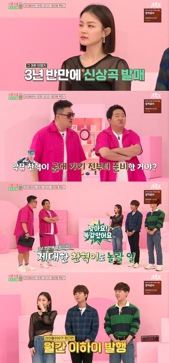 정형돈은 "그러니까 찬혁이(악동뮤지션) 군대 가기 전부터 준비했던 거야?"라며 슬프게 물었다. 데프콘은 "찬혁이 기분이 묘했겠는데? '너 아직도 앨범 안 나왔어?'라면서"라고 얘기했다. 이에 이하이는 "맞아요, 똑같이 그랬어요"라며 웃음을 터뜨렸다.