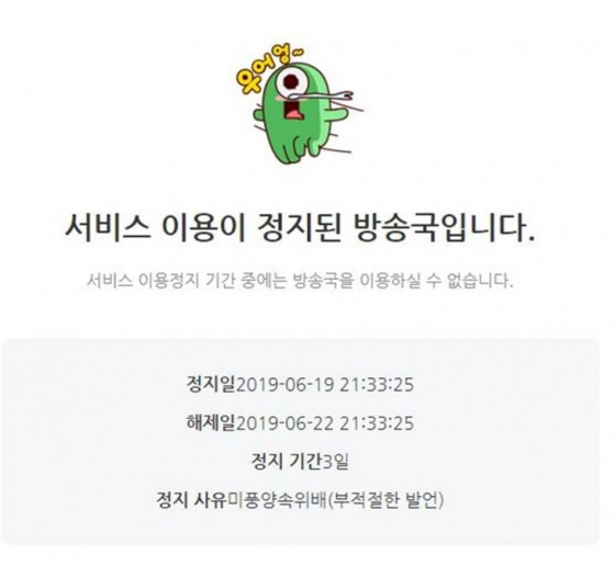 지난 19일 아프리카TV 측은 세 사람에게 '3일 이용정지'라는 징계 처분을 내린다고 밝혔다.