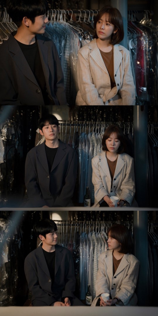 이런 가운데 이정인과 유지호가 늦은 밤 세탁소 안에 나란히 앉아 술잔을 기울이는 모습이 공개됐다. 이들은 함께 소주를 마시며 솔직한 이야기로 서로 더 깊이 알아가는 시간을 갖는다. 특히 마주 본 두 사람의 눈빛에서 상대를 향한 깊어진 마음이 느껴진다.