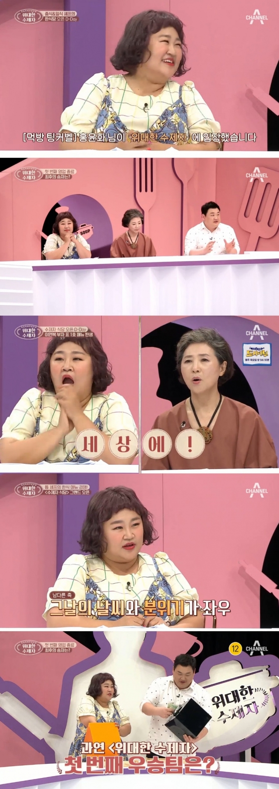 지난 19일 방송된 '위대한 수제자'에서는 중식 대가 부자(父子)와 먹방 여신, 일식 셰프의 자존심을 건 대결이 펼쳐친 가운데 홍윤화가 첫 출연했다.