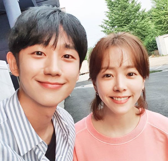 사진 속 정해인은 한지민과 환한 미소로 카메라를 응시하고 있다. 특히 두 사람의 훈훈한 비주얼이 눈길을 끈다.