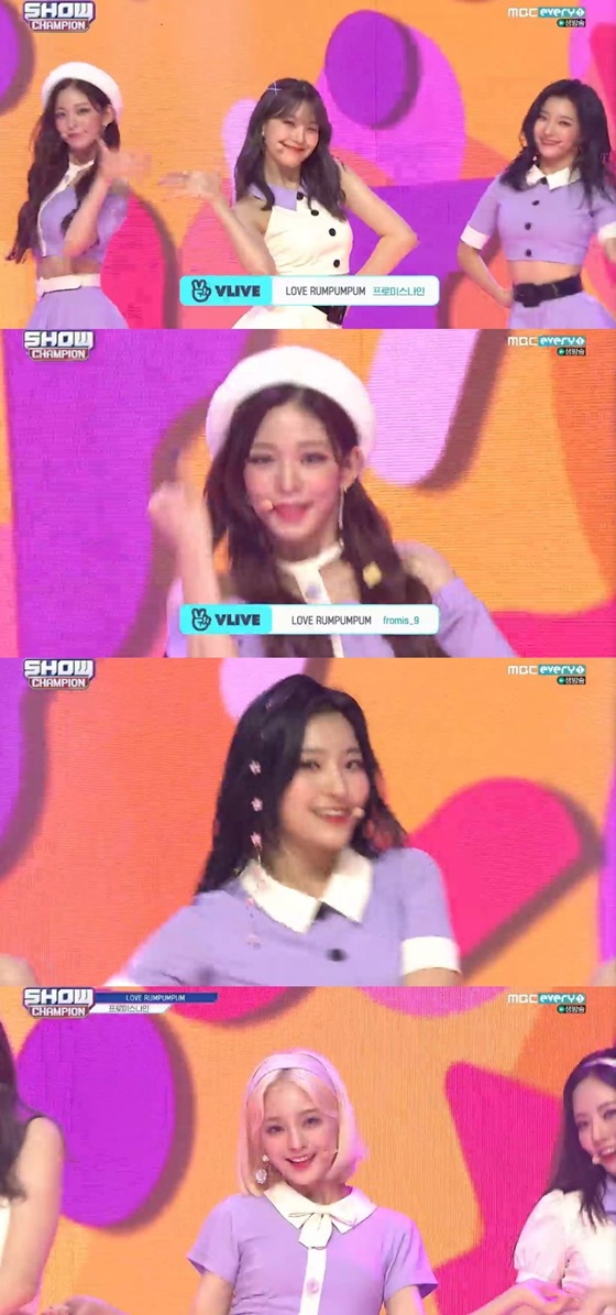 프로미스나인은 17일 오후 방송된 MBC 뮤직 음악 순위 프로그램 '쇼! 챔피언'에서 앨범 'FUN FACTORY'의 수록곡 'LOVE RUMPUMPUM'의 무대를 꾸몄다.