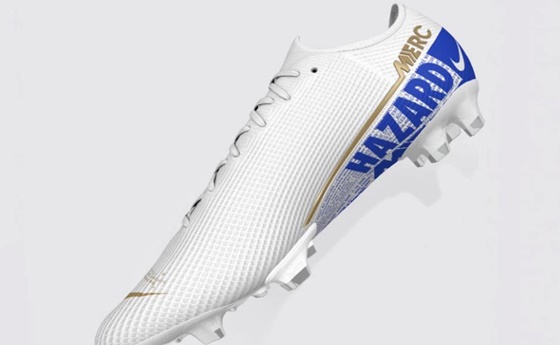 영국의 더선은 17일(한국시간) "아자르가 새롭게 신을 축구화에 첼시를 향한 존중을 담아냈다"고 전했다. 이 축구화는 흰색 바탕에 밑부분에는 푸른색 글씨로 '아자르'라고 쓰여져 있다. 또 금색 띠도 눈에 띄는 부분이다. 보도에 따르면 푸른색 부분은 전 소속팀 첼시를 뜻하고, 금색은 현 소속팀 레알을 의미한다고 한다. 레알은 전통적으로 흰색 유니폼을 입지만, 올 시즌 금색 라인으로 포인트를 준 것이 특징이다. 아자르의 축구화와 흡사한 부분이다.