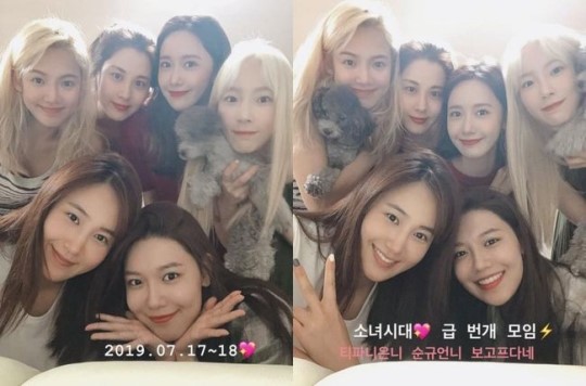 서현은 18일 자신의 인스타그램 스토리에 "소녀시대 급번개 모임. 티파니 언니, 순규 언니 보고프다네"라는 글과 함께 소녀시대 멤버들과 함께 찍은 사진을 게재했다.