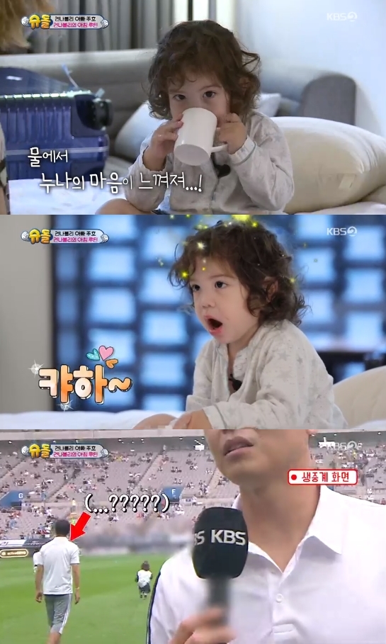 마지막까지 나은이는 경기장으로 입장하는 박주호에게 "아빠 팔찌 친구들한테 자랑해", "아빠 봐봐. 사랑해"라며 애정 넘치는 응원을 보였다. 박주호도 경기장에서 가벼운 몸놀림으로 나은이의 응원에 보답했다.