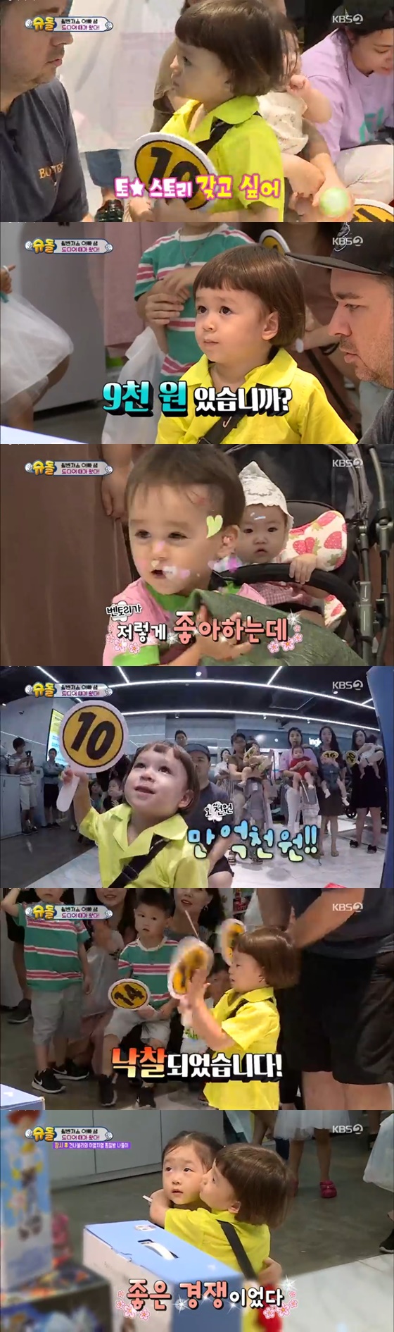이 모습을 본 MC 도경완은 "훌륭한 아빠에 흘륭한 형"이라며 "참교육을 시켰다. 경매를 통해 형제애를 가르쳤다"고 극찬했다.