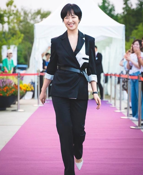 공개된 사진에서 김민정은 은은한 미소와 위풍당당한 워킹을 드러냈다. 김민정은 검은 색 수트와 짧은 숏컷으로 시선을 사로잡았다.