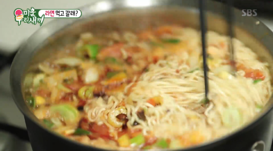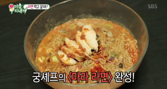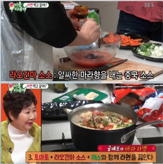 이날 이상민은 라면에 토마토, 라오간마 소스 등을 섞어 일명 '마라라면'을 만들었다.