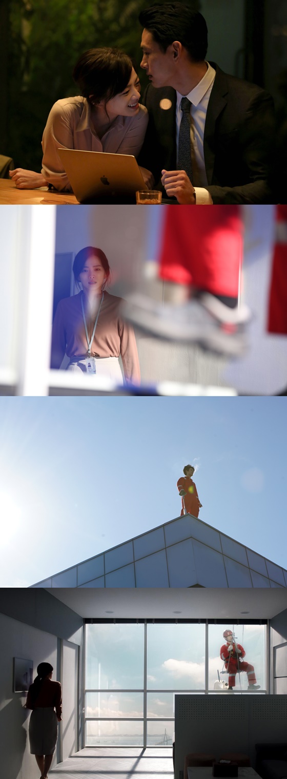 서영의 연인 진수(유태오 분)와 그녀를 창밖에서 바라보는 로프공 관우(정재광 분)의 모습은 이들이 보여줄 감성 케미스트리를 배가시킨다. 특히 고층빌딩의 가장 높은 곳에 외롭게 서있는 로프공 관우를 밑에서 올려다 본 아찔한 장면, 창 밖에 매달린 로프공에 시선을 빼앗긴 서영의 모습을 담은 장면 등은 마치 한 편의 그림을 보는 듯한 독특한 구도와 아름다운 색감이 시선을 사로잡는다.