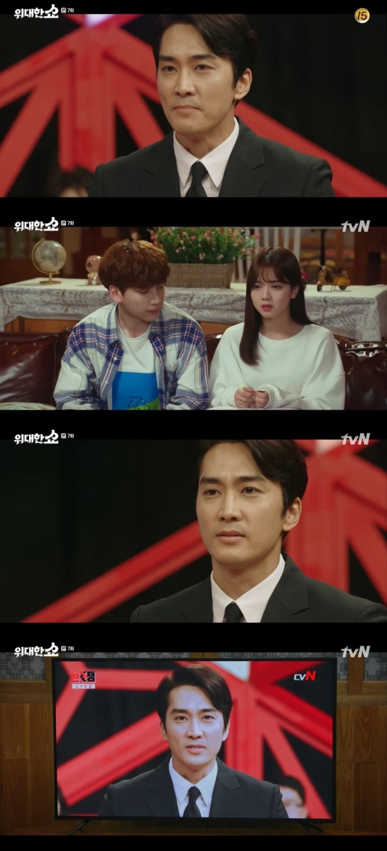 16일 오후 방송된 tvN 예능 프로그램 '위대한 쇼'(극본 설준석, 연출 신용휘·김정욱)에서는 방송을 통해 한다정(노정의 분)에게 진심을 전하는 위대한(송승헌 분)의 모습이 담겼다.