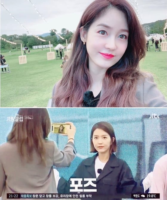 공개된 사진에는 팬미팅 현장서 이진을 찍고 있는 성유리의 모습이 담긴 JTBC '캠핑클럽' 방송 화면이 담겼다. 하지만 자세히 보면 이진을 찍고 있는 성유리의 휴대폰 속 화면에는 성유리의 모습이 담겼다.