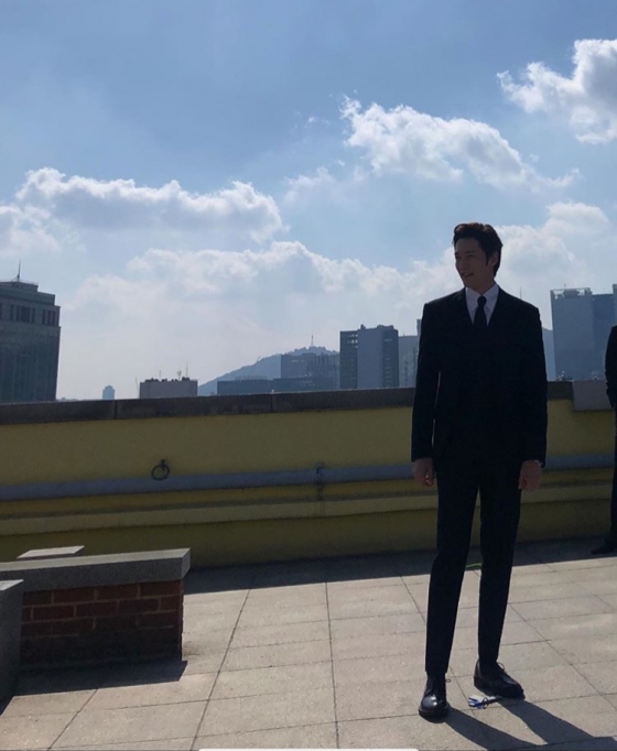 공개된 사진 속 최진혁은 멋진 슈트핏을 뽐내며 청명한 하늘 아래에서 햇빛을 느끼고 있다.