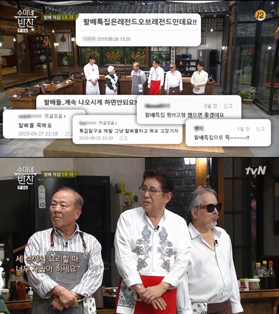 16일 오후 방송된 tvN 예능 프로그램 '수미네 반찬'은 '할배특집' 5주차로 꾸며졌다.