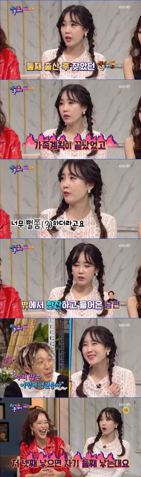 이날 별은 셋째를 출산한지 100일도 안 됐다며 출산 이후 첫 예능이라고 밝혔다. 별은 "둘째 때 가족계획이 끝났었고 수많은 인터뷰에서 우리는 끝났다고 얘기했는데 정말 너무 뻘쭘하더라"라고 말해 웃음을 자아냈다.