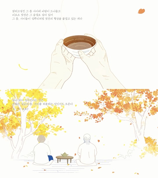 찻잔의 물을 새지 않게 하는 보이지 않는 틈, 차가운 눈바람과 비를 막아주는 미세한 틈처럼 '틈이 있어 더 단단한 하나가 된다'는 시의 의미에 가을의 계절감을 더했다. '마음을 켜고 함께 걸어갑니다'라는 캠페인 슬로건도 함께 담았다.