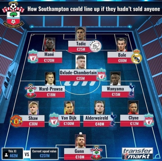 선수 면면을 따져봐도 무척 화려하다. 11명 중 사우스햄튼 소속은 워드-프라우스, 건뿐이다. ‘트랜스퍼마크트’는 “만약 사우스햄튼이 주축 선수들을 모두 팔지 않았다면 이 스쿼드는 사우스햄튼의 것이 될 수 있었다”면서 아쉬움을 드러냈다.