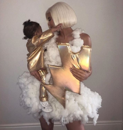 한편 과거에도 카일리 제너와 스토미의 모녀 할로윈 의상은 많은 관심을 받아왔다. 분홍빛 나비로 변신한 적도 있으며, 천둥번개와 구름이 된 적도 있었다.