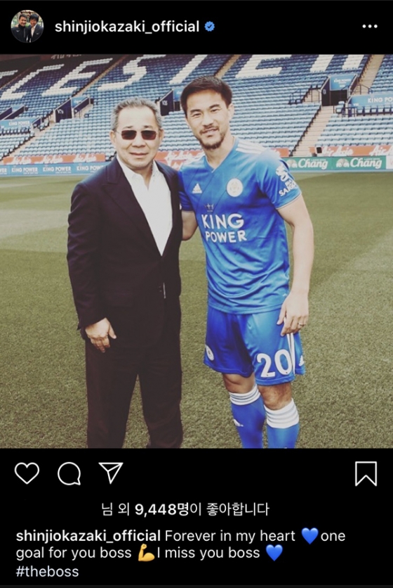 [스포탈코리아] 허윤수 기자= 시즌 3호 골을 기록한 오카자키 신지(우에스카)가 전 소속팀 레스터 시티의 구단주였던 비차이 스리바다나프라바를 추모했다.