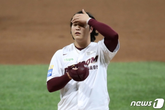 이날 장발의 조상우가 투구를 할 때마다 모자가 벗겨졌다. 때로는 모자가 그라운드에 떨어지는가 하면, 투구 후 손으로 직접 잡을 때도 있었다. 분명한 건 정상적인 투구를 하기에 지장을 초래할 정도로 불편해 보였다는 점이다. 조상우도 모자를 주워 쓸 때마다 멋쩍은 표정을 지었다.