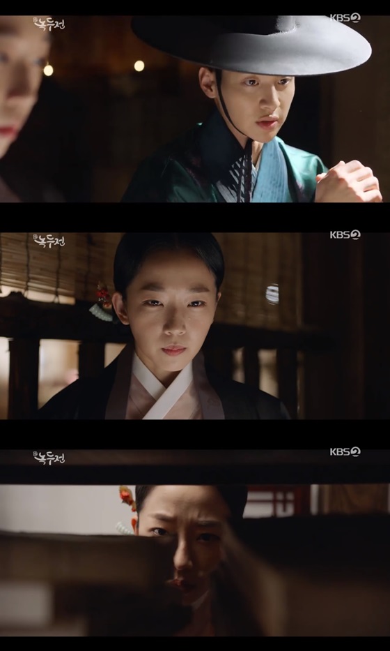 11일 오후 방송된 KBS 2TV 월화드라마 '조선로코-녹두전'(연출 김동휘·강수연, 극본 임예진·백소연)에서는 전녹두(장동윤 분)와 공조하고 차율무(강태오 분)의 공신록을 찾는 김쑥(조수향 분)의 모습이 그려졌다.