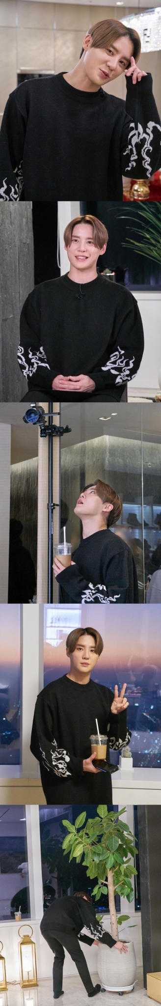 공개된 사진 속 김준수는 이마에 손을 대고 익살스러운 표정을 짓고 있다. 또 화면 속에서 환하게 웃고 있거나 천장에 달린 카메라를 구경하는 모습도 담겼다.
