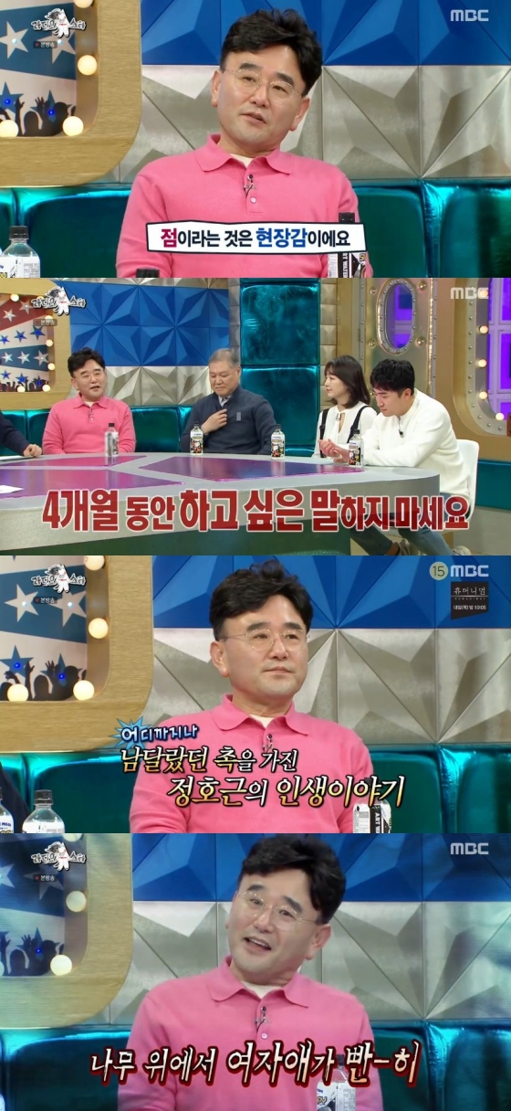 이어 정호근은 "그래서 분장차로 와서 '산에 뭐 귀신 있어?'라고 물었더니 분장차 직원이 '뭐 봤어? 어제 거기서 목매달았대'라고 말하더라"고 말해 으스스한 분위기를 자아냈다.