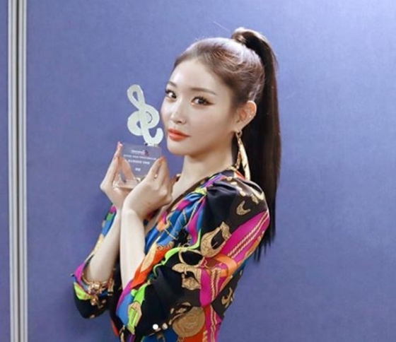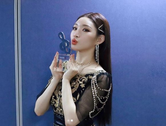 공개된 사진 속 청하는 양 손에 트로피를 들고 카메라를 응시하고 있다. 청하는 이날 서울 송파구 잠실실내체육관에서 열린 제9회 '가온차트 뮤직 어워즈'에서 '올해의 핫퍼포먼스상'과 '올해의 음반제작상'을 수상했다.