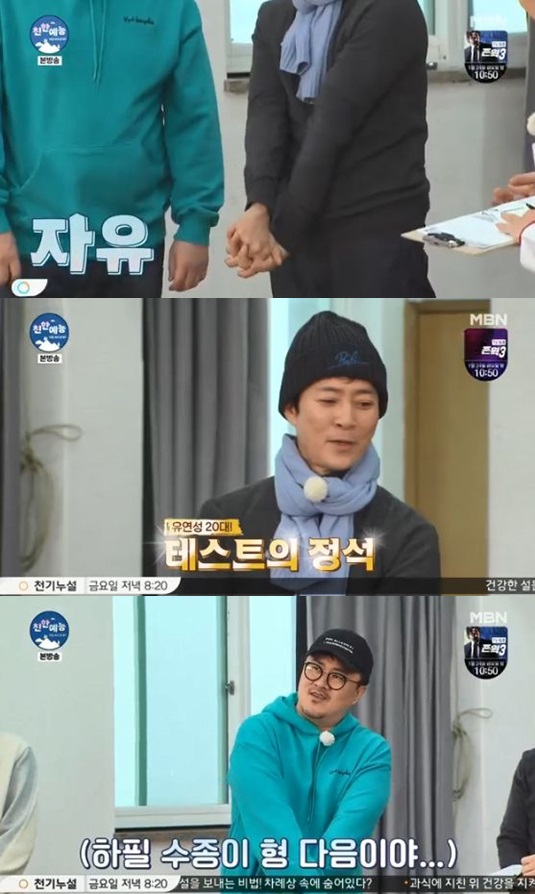 21일 오후 방송된 MBN 예능프로그램 '친한 예능'에서는 신체 나이를 테스트하는 멤버들의 모습이 그려졌다.