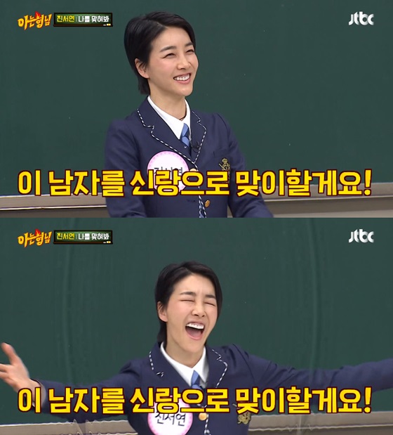 진서연은 지난 1일 방송된 JTBC 예능 프로그램 '아는 형님'에 그룹 소녀시대 멤버 겸 배우 최수영과 함께 출연했다. 이날 진서연은 남편과 첫 만남부터 결혼까지 과정을 털어놨다.