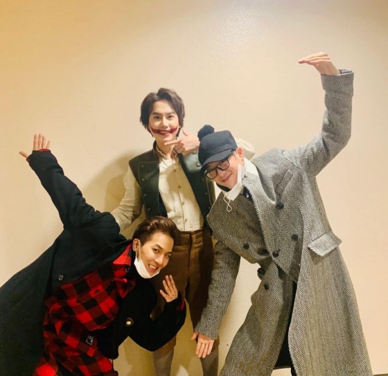 공개된 사진 속에는 분장을 한 채 가운데에서 미소 짓고 있는 규현과 양 옆에서 장난끼 넘치는 포즈를 취하고 있는 피오, 민호의 모습이 담겨있다.